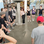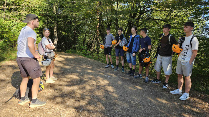 Anschließend ging es hoch auf fünf Meter. Klingt harmlos, sah aber von oben schon deutlich höher aus. Hier der wichtige Hinweis: ordentlich vom Felsen abdrücken. Ein Tipp, den wirklich alle beherzigten. Manche kapitulierten dann doch vor dieser Höhe, andere wollten gleich Saltos probieren – was die Lerncoaches energisch verboten.