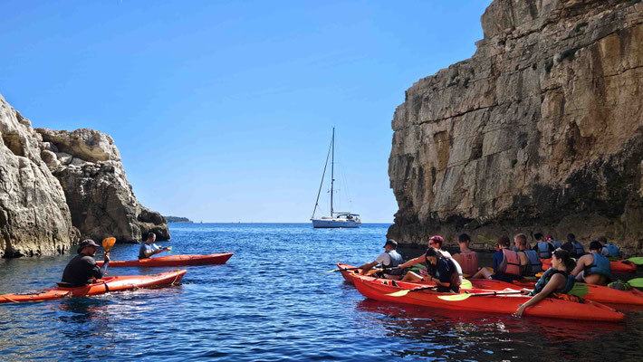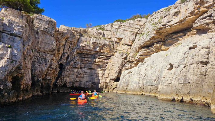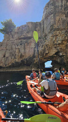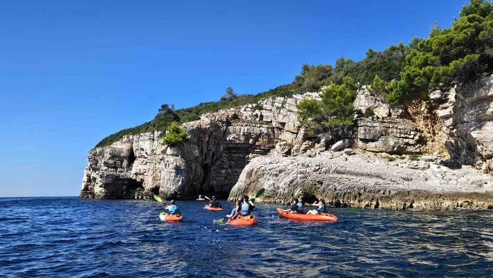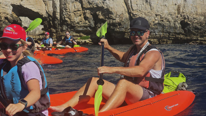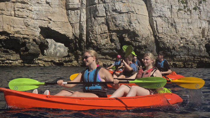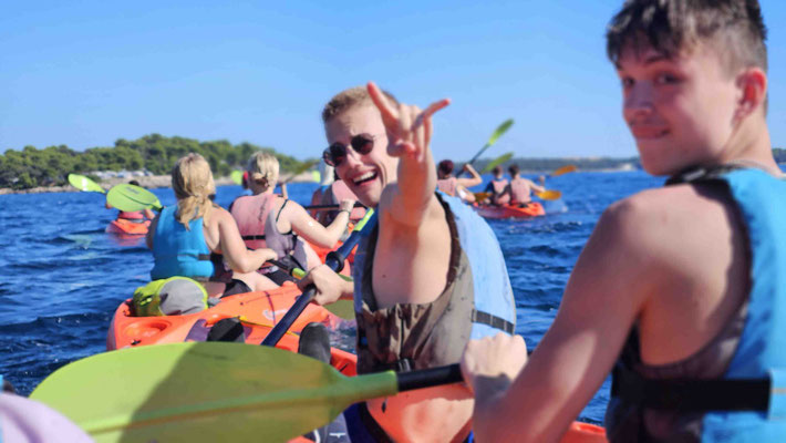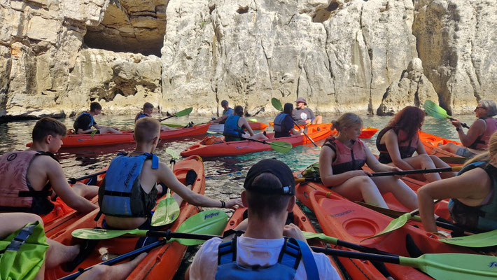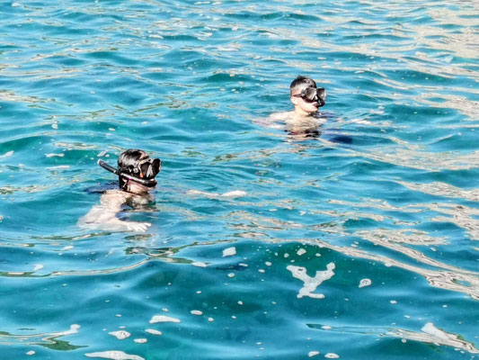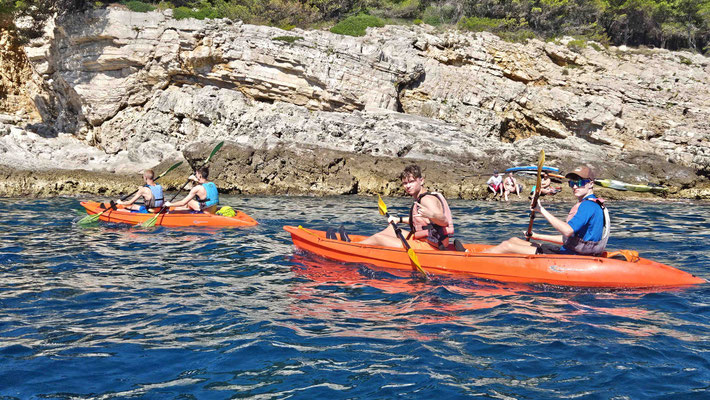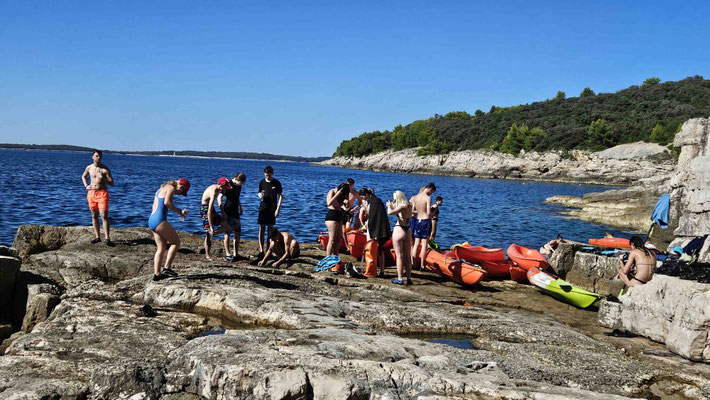 Danach durfte jeder selbst entscheiden: noch eine Runde baden, schnorcheln oder einfach die Sonne genießen. Ein kurzer Moment von „Ferien auf der Felseninsel“, bevor es wieder hieß: zurück in die Kajaks und ran ans Paddeln.