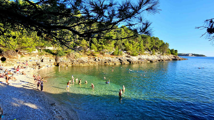 11.36 Uhr saßen wir endlich im Bus, und die Fahrt an der malerischen Adriaküste entlang startete. Bis 13.55 Uhr, als der Fahrer kurz vor Pula beschloss, dass ein Tankstopp unverzichtbar sei. Nicht nur, weil der Tank leer war, sondern vermutlich, weil er dringend eine Pause brauchte.