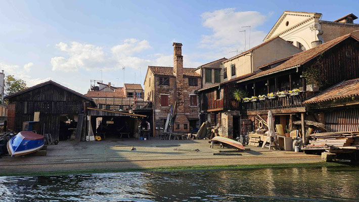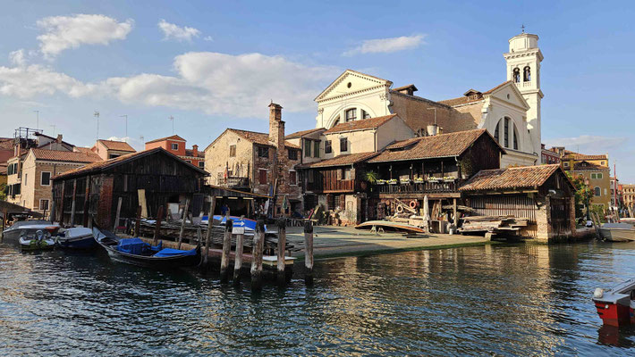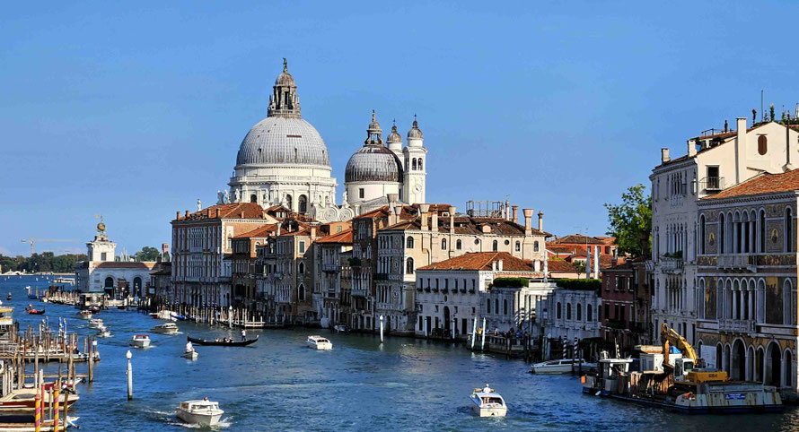 Um 16 Uhr trafen wir uns wieder brav am Markusplatz, zogen weiter zur Brücke Ponte dell’Accademia (perfekt für das obligatorische Gruppenfoto, das vermutlich niemand jemals entwickeln lässt) und setzten unseren Weg zur alten Gondelwerft Venedigs fort. Danach noch ein Abstecher zur Santa Maria Della Salute – schließlich darf eine Kirche aus der Barockzeit in keinem Sightseeing-Marathon fehlen.
