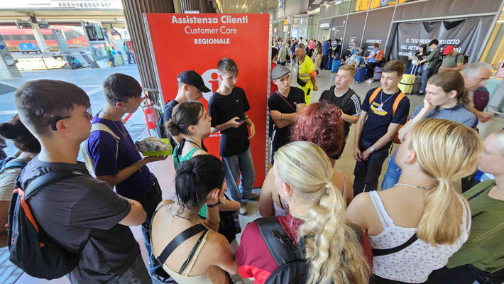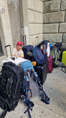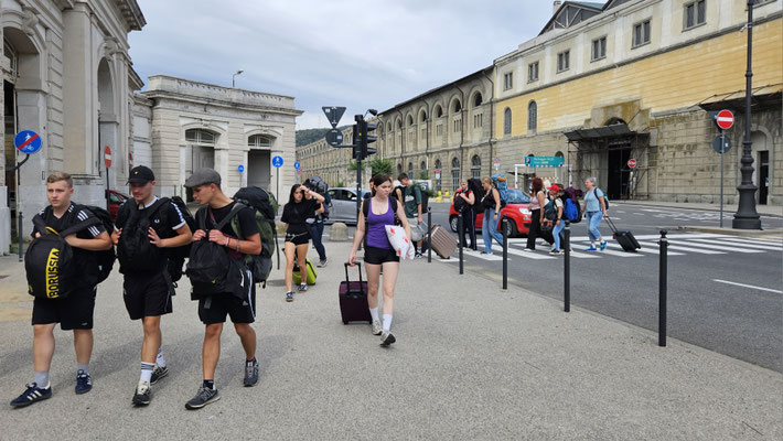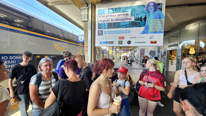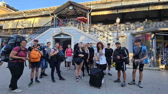 10:30 Uhr Ankunft am Bahnhof Triest mit einem kollektiven Gefühl von „Endlich geschafft“. Denn der Weg zum Bahnhof war weniger Spaziergang, mehr Fitnessstudio-Deluxe: 20 Minuten Hardcore-Cardio mit Rucksackgewichtsklasse „Expedition Himalaya“. Jeder Schritt ein Statement, jeder Schweißtropfen ein Souvenir.