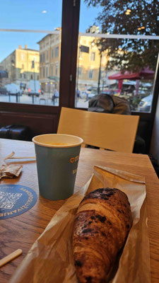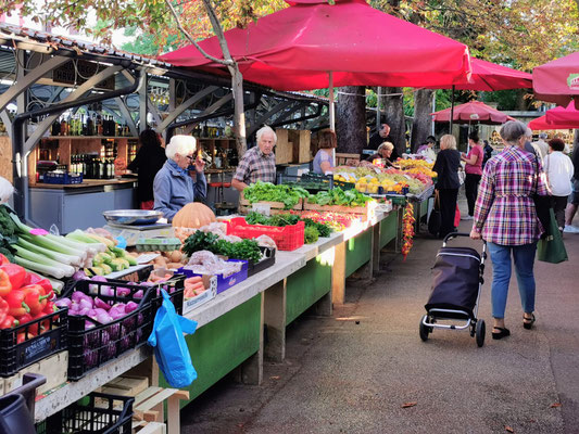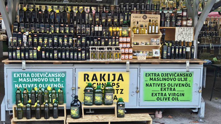 Gemeinsam schleppten wir unser geliebtes Gepäck noch einmal durch die Straßen von Pula, bevor wir ein Frühstück in der Nähe der Markthalle einnahmen – die perfekte Stärkung für unsere nächste Etappe. Auf dem Markt glänzten die Stände unter anderem mit Schnaps, Öl, Honig, Trüffeln und frischem Obst – nur der großzügig verteilte Duft der Fischhalle war ein Gratis-Extra, das wirklich niemand bestellt hatte.
