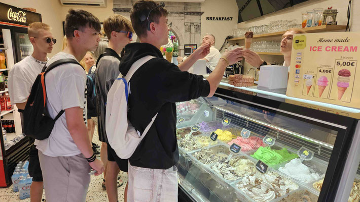 Die hitzigen Diskussionen blieben auch den Einheimischen nicht verborgen. Der Besitzer einer kleinen Gastronomie bekam alles mit und spendierte unseren Lerncoaches kurzerhand eine Kugel Eis zur Abkühlung. (Manchmal reicht dies schon aus um die Nerven zu retten.)