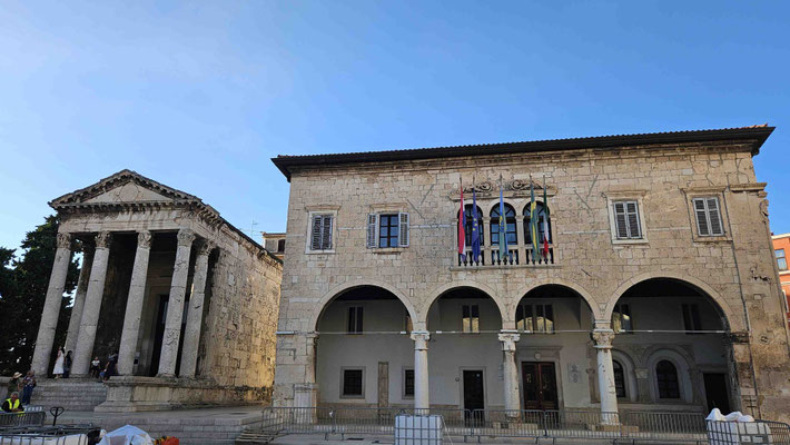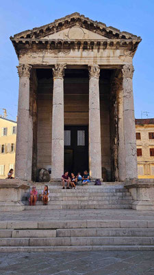 Weiter ging es mit dem letzten offiziellen Programmpunkt der Sightseeing-Tour: dem Augustus-Tempel. Nett anzusehen, keine Frage – aber die meisten Gedanken wanderten schon Richtung Freizeit und Abendessen. Schließlich ist ein Tempel zwar beeindruckend, doch ein leerer Magen lässt sich kaum beeindrucken.
