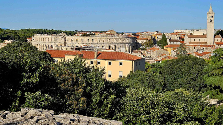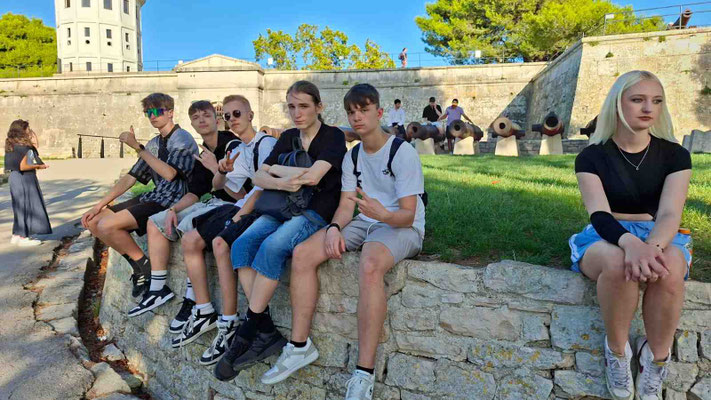 Frisch gestärkt ging es weiter hinauf zum Castell von Pula. Oben angekommen, genossen wir einmal rundherum die Aussicht – die Stadt, das Meer, und das beruhigende Wissen, dass wir trotz schwindender Energie noch immer rechtzeitig den Bus erwischen würden.