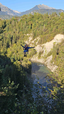Die erste Bahn: „nur“ 350 Meter lang, aber hoch genug, dass man anfing, sein Leben zu überdenken. Danach wurde es ernst: 700 Meter Adrenalin pur, Spitzengeschwindigkeit bis 65 km/h, sieben Bahnen insgesamt. Wer sich traute, die Augen zu öffnen, wurde mit Ausblicken belohnt, die so kitschig schön waren, dass sie fast schon Postkarten beleidigten. Dazu die Guides – professionell, witzig, und (laut einzelner Stimmen) optisch mindestens so ansprechend wie die Landschaft.