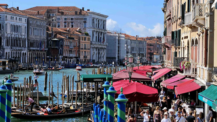 Und dann das Highlight: die Bootsfahrt durch den Canal Grande. Ein echtes Panorama-Spektakel, bei dem man spätestens nach der dritten Brücke verstand, warum Gondeln hier so teuer sind.