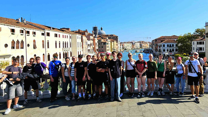 Um 8:30 Uhr landeten wir schließlich in Venedig/Mestre und checkten nach einem kurzen Fußmarsch im Hotel Mondial ein. Ganze 30 Minuten Pause standen uns zur Verfügung – ein Luxus, der kaum zu überbieten war. Pünktlich um 9:20 Uhr hieß es dann: Antreten in der Lobby, die Müdigkeit wurde einfach kollektiv ignoriert.