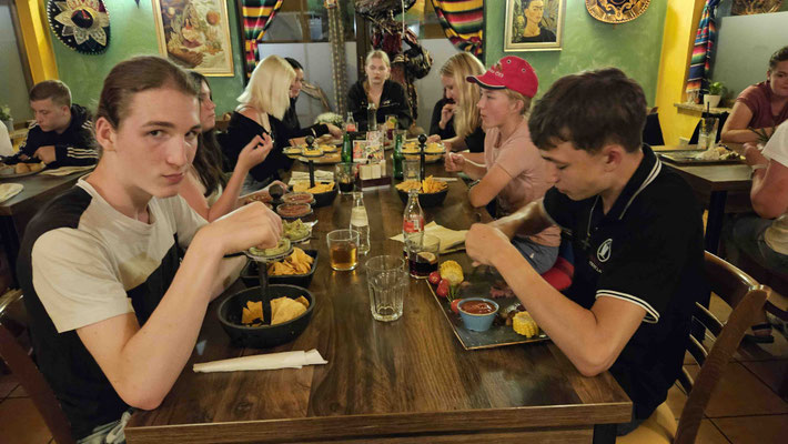Es blieb gerade genug Zeit zum Duschen und Packen, ehe wir zum gemeinsamen Abschlussessen aufbrachen: beim Mexikaner. In entspannter Atmosphäre und mit mehr Tacos, Burritos und Nachos als man eigentlich stemmen kann, ließen wir die letzten Tage Revue passieren. Ein wirklich gelungener Abschluss.