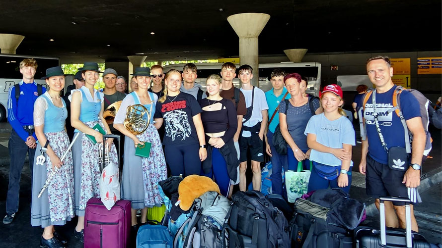 In München erwartete uns dann ein Empfang der besonderen Art: eine fröhliche Frauengruppe in Tracht, wohl auf dem Weg zum gestern gestarteten Oktoberfest. Charmant überredet, posierten sie direkt für unser obligatorisches Gruppenfoto.