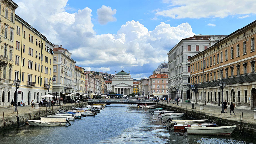 Am Canal Grande (ja, Triest hat auch einen :) übernahm Lucio die Rolle des Reiseführers. Mit stoischer Ruhe erklärte er uns die Umgebung, während wir uns innerlich fragten, ob wir nicht besser gleich eine Bank am Wasser hätten mieten sollen, um Gepäck und Beine gleichzeitig abzustellen.