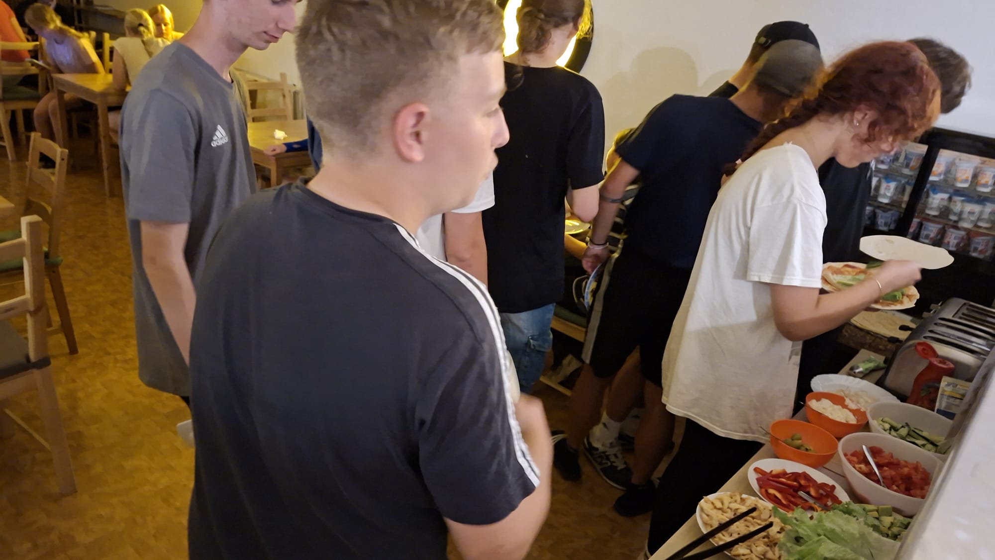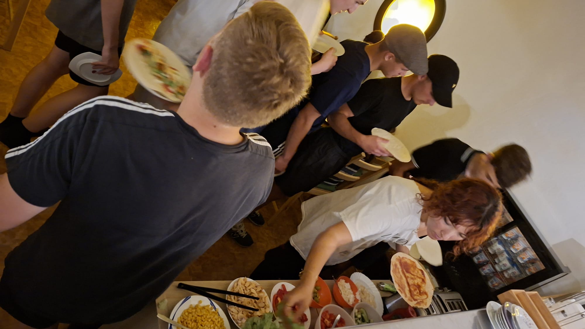 Zum Glück gab es einen Lichtblick – oder besser gesagt: Wraps. Während wir uns innerlich noch fragten, ob wir Keller oder Sternengucker besser finden sollten, zauberte das Küchenteam des Abends eine Portion Abendessen. Die Wraps wurden gefüllt, gefaltet und verschlungen, als gäbe es kein Morgen.