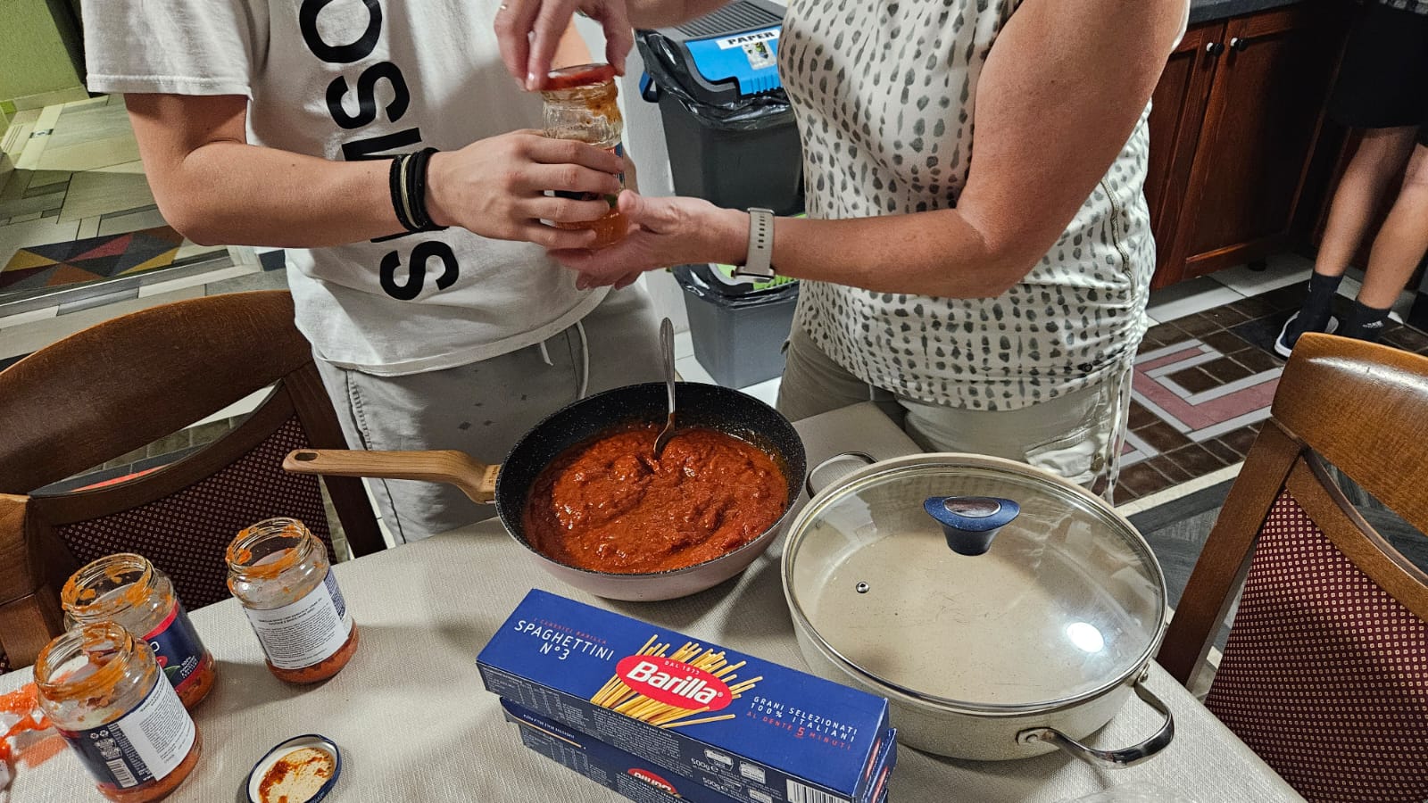 Für den Versorgungstrupp des Tages ging es dann ans Eingemachte: Nudeln, Soßen und alles weitere besorgen, was das gemeinsame Abendessen zum "Highlight" machte. Organisation und Einkauf erwiesen sich einmal mehr als strategische Meisterleistung: Wer wann wo was holt, welche Menge reicht und ob es am Ende schmecken wird und ob Nudeln mit Ketchup schon als italienische Fusion-Küche durchgehen.