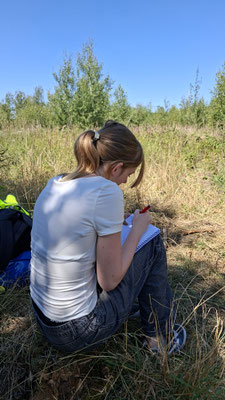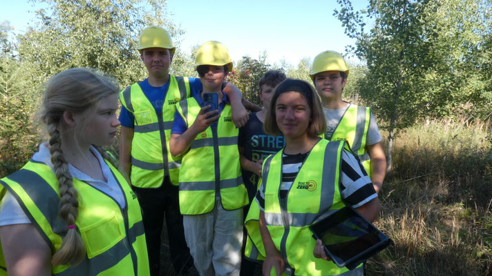 Die andere Gruppe beschäftigte sich mit der Pflanzaktion. Bei einer Einführung gab es wichtige Informationen zum Thema "Aufforstung" von Mitarbeitern der Firma Mercer und Förster W. Ladwig erzählte wichtige Fakten über die Region und u.a. über den Borkenkäfer. Nach einer Pause wechselten dann die Gruppen.